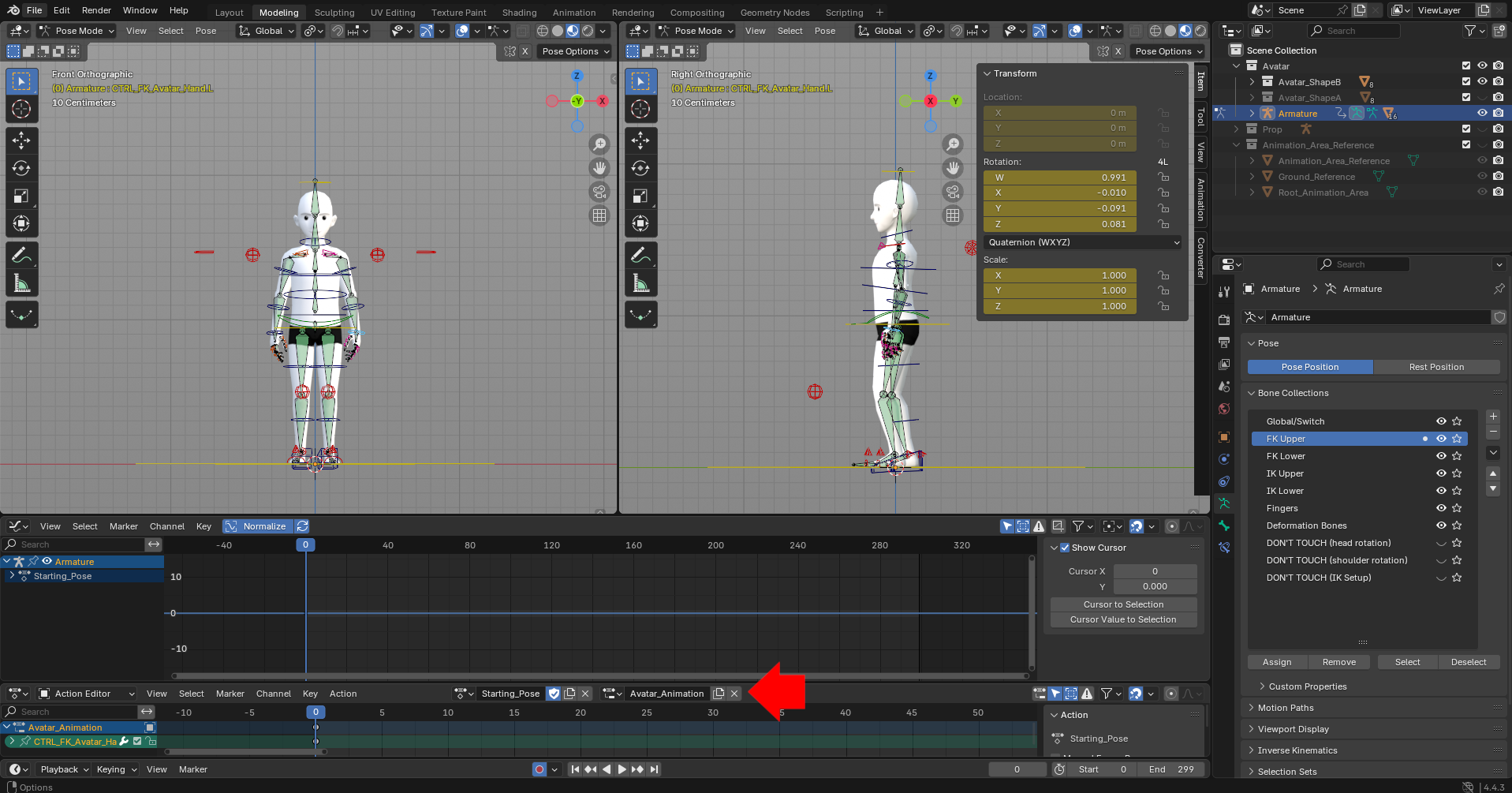 • Both animations (Avatar and Prop) must have the same keyframe length.