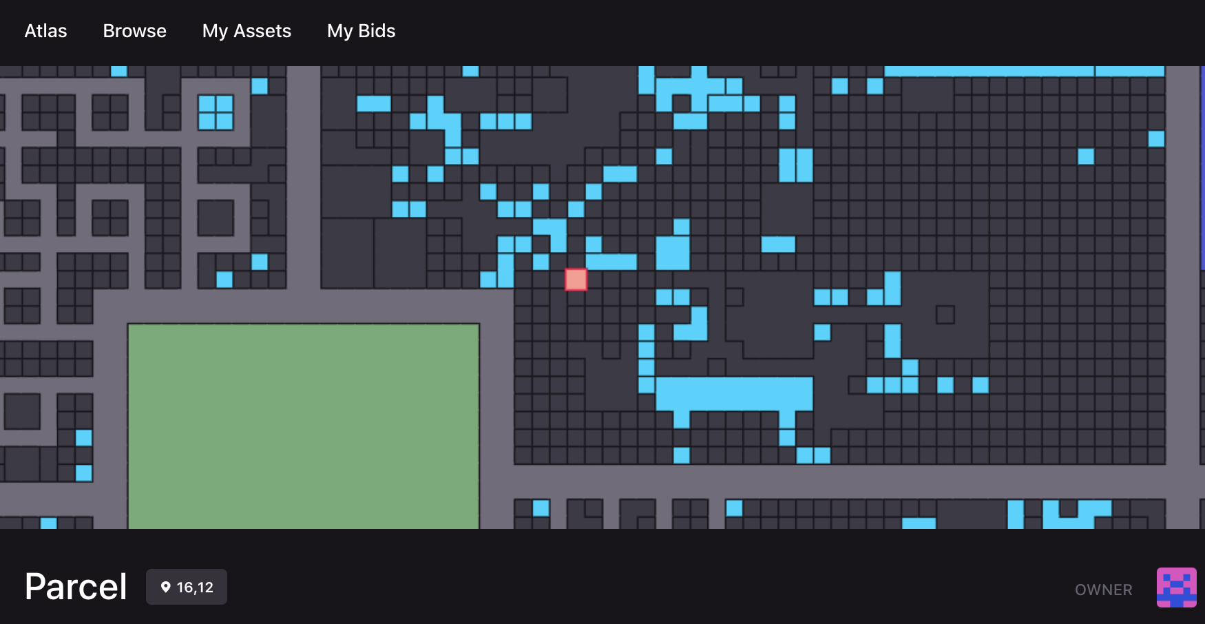 Click on a parcel to view its status, coordinates, and owner’s public wallet address (if it has an owner). From the map view, you can click on any LAND to go to see its details, buy it, make an offer to buy it, and even rent it.
